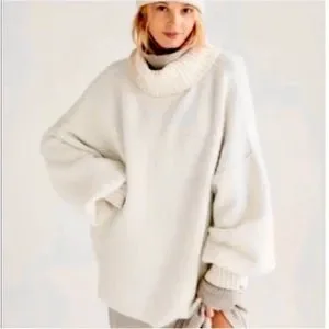Free People Milo Oversized Tunic Turtleneck Sweater in Off White NWT Size Med