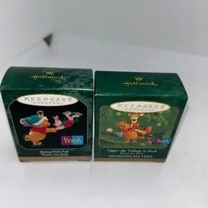 2 Hallmark Pooh Collection Piglet Tigger Miniature 1999-2000 Skating With Pooh