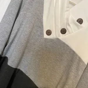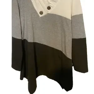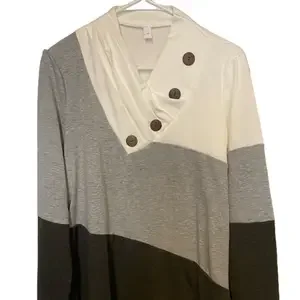 Decorative Button Patchwork Asymmetrical Neck NWOT