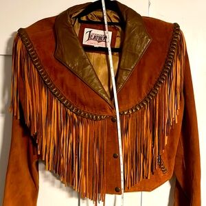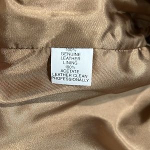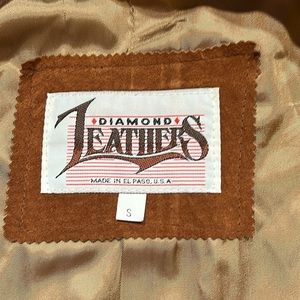 Diamond Leathers 100% Genuine Leather Jacket with braided trim. Never been worn. Appears to come lower in the front then back. See photos for measurements. 19” from neck to back bottom. 22.5” from neck to front bottom button. 16.5” Armpit line to armpit line. Paid $500 for it, our loss is your gain!