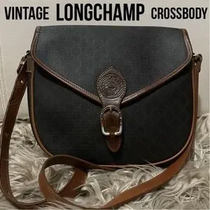 Vintage Longchamp Crossbody Bag-Leather-Brown Tones/Black-Flap Snap Closure