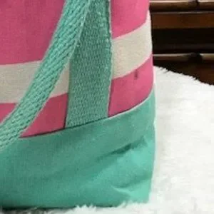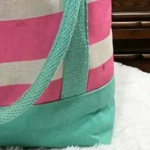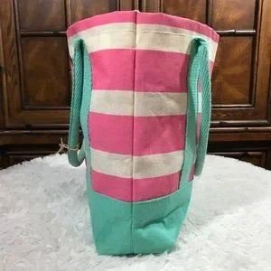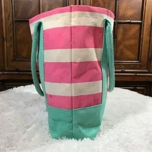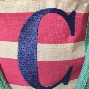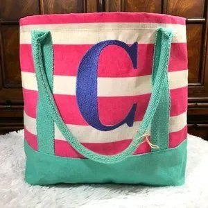 Mud Pie Initial C Cabana Stripe Pink Aqua Periwinkle Canvas Tote