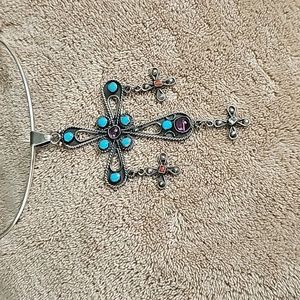One of a kind TURQUOISE made with 925 Silver, Cross also has Amethyst, and Coral, diamond Signed
