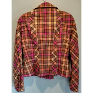 Per Se Wool Cashmere Blend Pink Brown Check Crop Double Breasted Jacket Size 6
