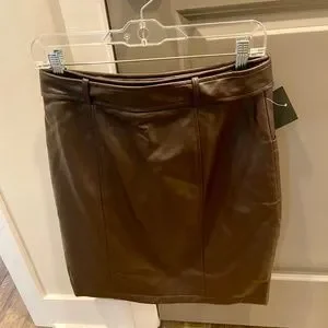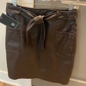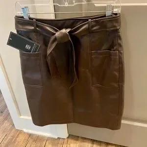 Bagatelle Chocolate Faux Leather straight 22" Skirt Lined Side Zip&Belt SZ 6 NWT