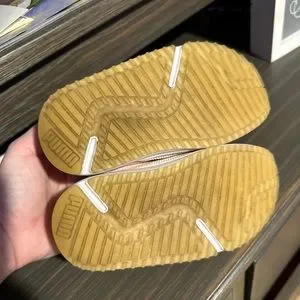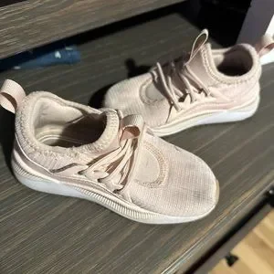 Used girls pink pumas, needs cleaning, can throw in washing machine or dishwasher