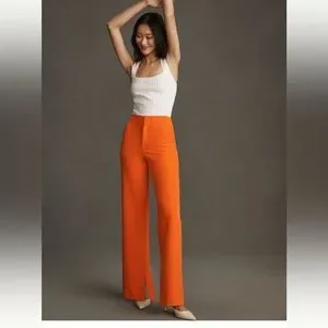 Sold out ants top rated @anthro; slimming tailored pants with side and back slit pockets, slit at hem—perfect blend of sophisticated styling and fun tangerine orange color. Smoke free home.