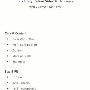 Anthropologie NWT Sz 27 side slit w/pockets trouser pants; beautifully tailored