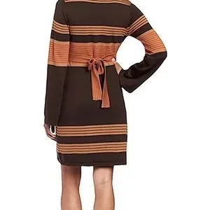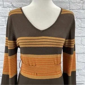 This sweater dress is perfect for the fall/winter season. Goes very well with leggings and boots. Well cared for as I bought new and wore once. No pulls/stains/smoke free/washed on gentle cycle and hang dry.