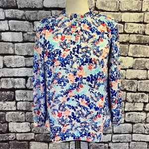 Talbots NWT Multicolored Long Sleeve Blouse W/ Ruffled Collar Size SP