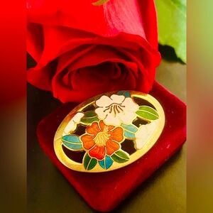 Vintage Cloisonne Floral Design Brooch