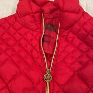 Micheal by Micheal Kors light weight XS red with gold accents puffer vest. Packable down fill. No markings. Perfect for holidays ❤️ only selling too many vests. Any questions please ask!