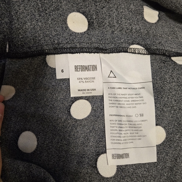 Reformation Boston black and white polka dot midi slip dress. Super cute, just don't wear it enough. Great preloved condition. Only notable flaw is a tiny snag near the bottom.