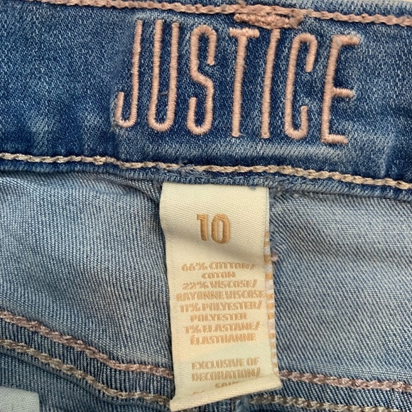 Super cute Girls Justice Shorts. Size 10, great condition. Distressed, frayed hem. Button closure. Pockets