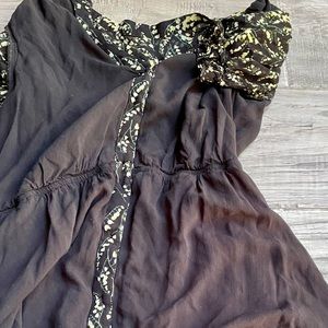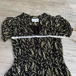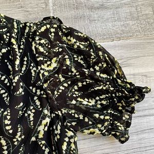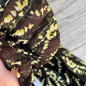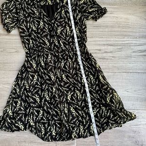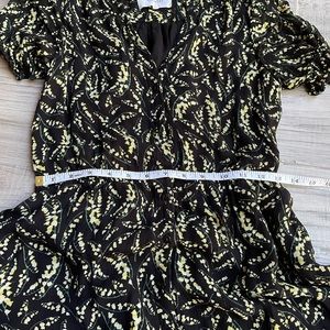 BA&SH Matcha Floral Mini Dress Noir Flowy Ruffles Elastic Waist BLK/Yellow SZ 4
