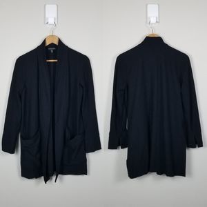 Eileen Fisher Black Viscose Blend Ponte Jersey Minimalist Longline Cardigan Sz M