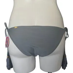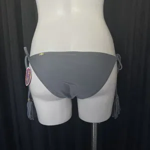 Kandy Wrapper Bikini Bottoms Grey Ties Side Tassel String Bathing Suit New Med