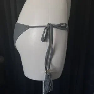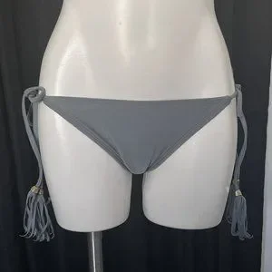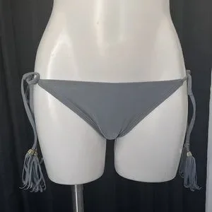 Kandy Wrapper Bikini Bottoms Grey Ties Side Tassel String Bathing Suit New Med.