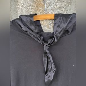 Tie in back, higher draped neck in front.