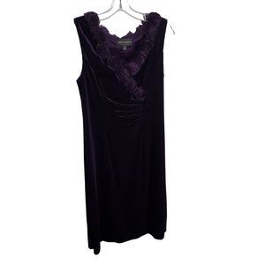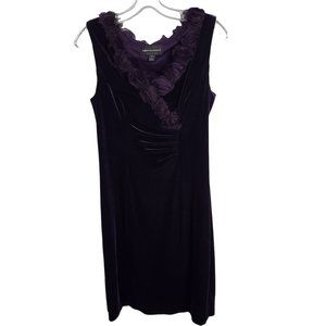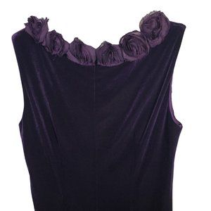 Connected Apparel Size 10 Dress Stretch Velvet Semi Fitted Rosette Trim Purple