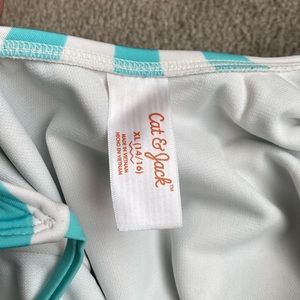 Cat & Jack striped one piece suit with cute ruffles at the hip. Great condition. Worn a few times for one summer. Size 14/16