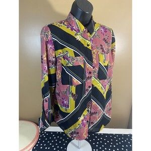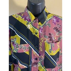 Multicolor Floral/striped Button Up Top With Pockets/button Sleeves Size XS