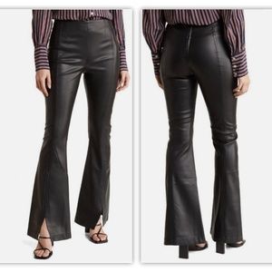 Free People Black Faux Leather Wide Flare Split Leg Pants Womens 31 NWOT