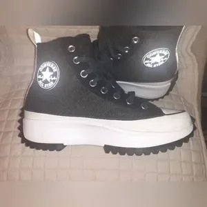 EUC' Converse Run Star Hike Sz. M 7 - W 8.5 Dark Gray/Black with reflective strip on back and reflective Converse emblem. Canvas around shoestring grommets for durability. Thank you for stopping by my closet. All questions welcome!!!