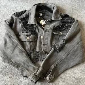 BNWT CROPPED BLACK WASHED DENIM JACKET🖤