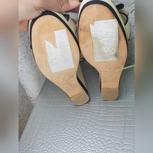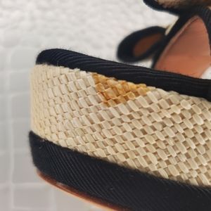Kate Spade Platform Raffia Sandals, size 7, creamaand black color, worn only once, somevisible stains on the item, please see details inphotos, item not available in stores and very few units available on digital sales platforms