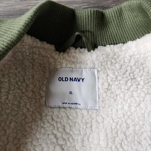 NWT Olive Green Water-Resistant Sherpa-Lined Quilted Zip Jacket Old Navy Sz XL. Small cut on sleeve. See last photo.