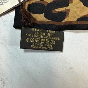 LOUIS VUITTON Fur Scarf Leopard Silk Black Fox Stole Bandeau vintage LV w/tag