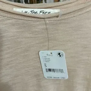 Free People Aria Trapeze long sleeve top in the color Misty Mink (very pretty, beige/peach). Oversized fit with cute pleating detail in back (see photos). New with tags, size small. This top would easily fit a size large.