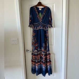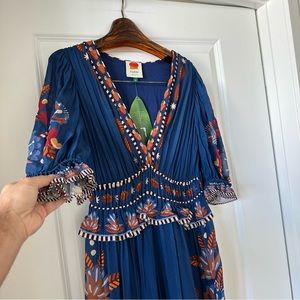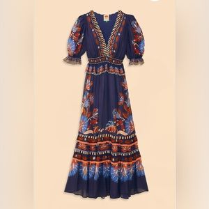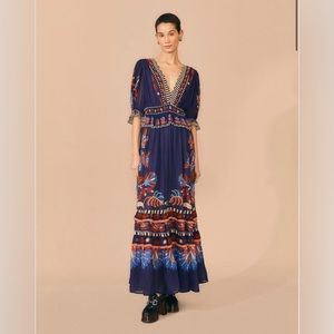 Farm Rio Blue Nature Beauty Short Sleeve Maxi Dress