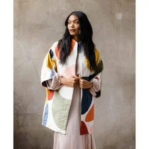 The Petal Quilted Cocoon Jacket is an elegant, unique statement piece, made using a combination of new applique techniques and organic fluid patchwork to create a fun and whimsical design. Adorned with exquisite petal-shaped details, this jacket commands attention in any room and ensures you will be the most stylish person in the crowd.