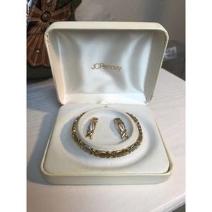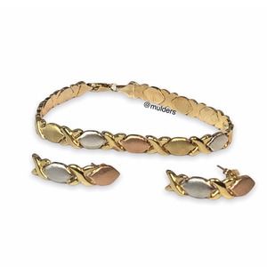 Vintage 90s JcPenney OTC 10K White Gold XO Bracelet & Earrings Set