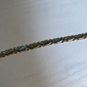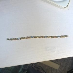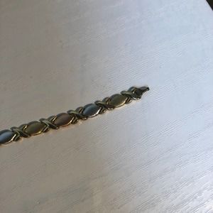 • Vintage late 90s JcPenney marked OTC 10k, white gold XO hugs & kisses bracelet and earring set in excellent condition