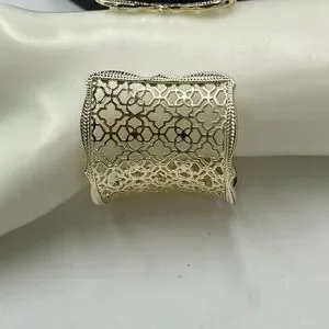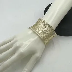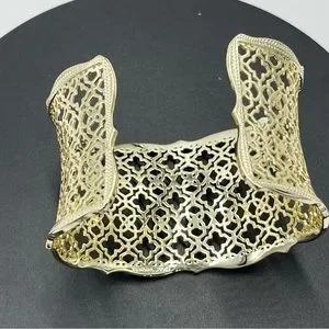 Kendra Scott Designer Candice Gold Tone Filigree Concave Wide Cuff Bracelet
