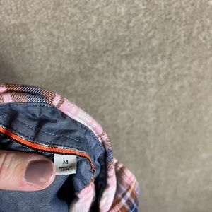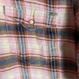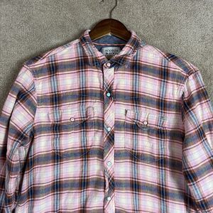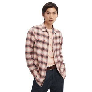 Scotch & Soda Iconic Western Shirt Mens Medium Pink Checked Flannel Linen Blend