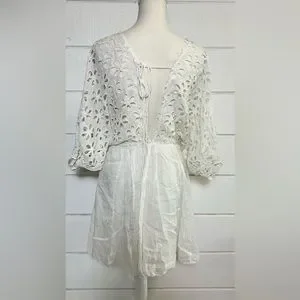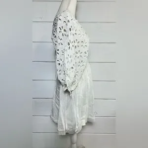 NWT Free People Bella Note Eyelet Mini Dress White Sz Small Retails $128
