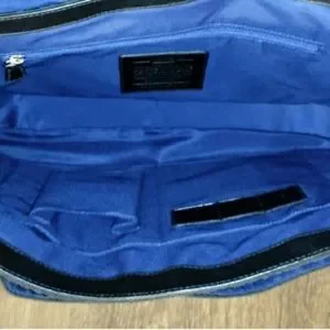 This is a great bag! Very sturdy and stylish and would make an excellent computer bag . I purchased it and only used it once and then stored it. It's in excellent used condition. The measurements are in the next to last photo. It does have the Coach logo throughout the black fabric. The only flaws are a very small white mark on the bottom (as seen in photo) and a very light mark on the silver Coach button. Other than that nothing that I can see. Price reflects condition. PRICE IS FIRM! Please feel free to ask questions.