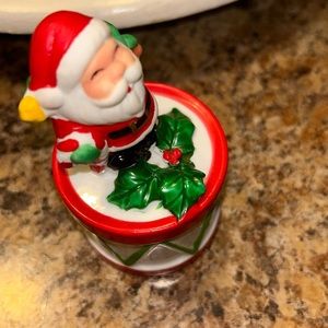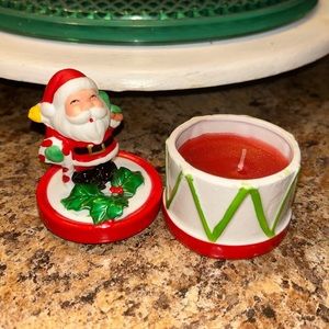 VINTAGE Woolworth Christmas Ceramic Candle Drum Santa Claus Lid Hand Painted