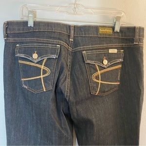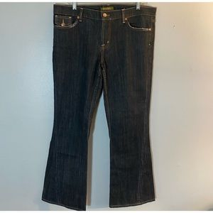 DAVID KAHN Jeans Women's 32 x 32 Nikki Twist Seam Flare Dark Wash Flap Pockets