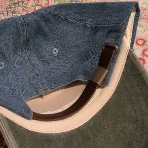 NWT Head Shots Denim Contrast Leather Strapback Dad Baseball Cap OS Vintage