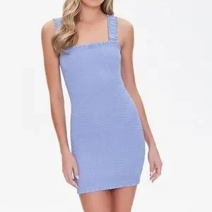 Forever 21 Blue smocked mini dress size Large women’s thick shoulder straps