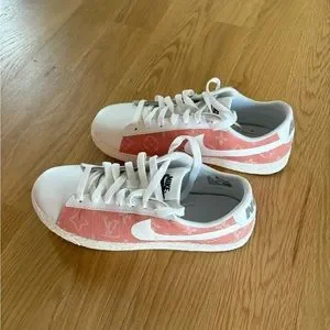 Not Geeks custom upcycled Nike x Louis Vuitton sneaker pink & white combo Size 8