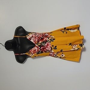 O'delilah Romper size S floral yellow spaghetti straps open back lace super cute. zipper on back see pictures for details stretch little bit. summer spring.