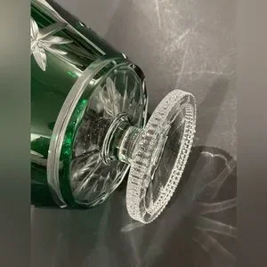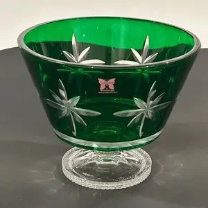 Marquise WATERFORD Vase Green Footed Bowl Compote, Cut Crystal Green Footed Bowl Pedestal Vase Starburst