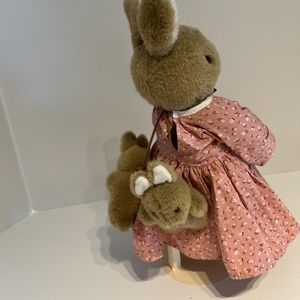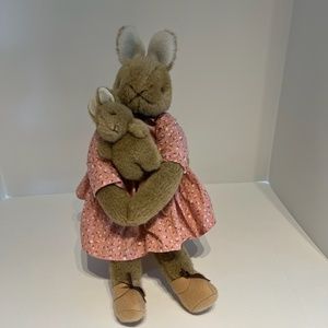 Vintage Charm Plush Mommy With Two Baby Bunnies Stuffed Toy