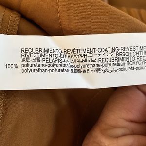 NWOT Zara beautiful faux leather camel colored jogger trousers with great pockets in front and back, elastic waist and inside drawstring. So pretty and flattering on! Beautiful color. First pix is stock photo in a little different style and color. Mine has the drawstring inside.